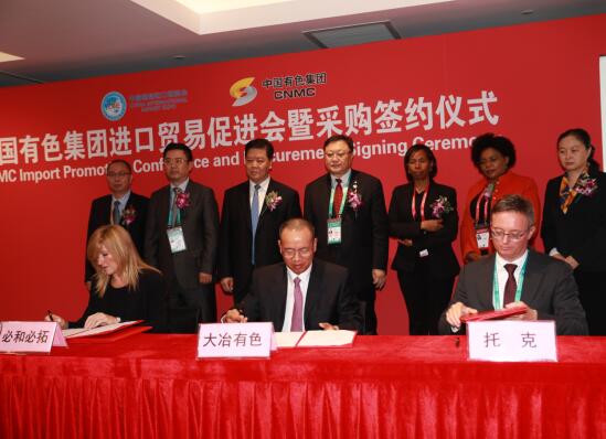 2018 年11月7日,在首屆中國國際進口博覽會期間,中國有色集團交易分團在國家會展中心(上海)舉辦了進口貿(mào)易促進會暨采購簽約儀式。這是中國有色集團貫徹落 實習近平主席博覽會開幕式重要講話精神的務實舉措,是落實國資委肖亞慶主任關于中央企業(yè)對外合作要求的實際行動,也是推動集團公司貿(mào)易業(yè)務發(fā)展、加強國際 合作的具體實踐。 中國有色集團董事長、黨委書記、總經(jīng)理王彤宙,中國有色金屬工業(yè)協(xié)會副會長趙家生,贊比亞商貿(mào)工部常秘卡尤 拉·席亞米,托克公司首席執(zhí)行官杰里米·威爾出席簽約儀式并致辭。贊比亞駐中國大使奇貝薩·孔達、哈薩克斯坦駐中國大使館參贊薩貝科夫、國資委國際合作局 巡視員徐愛波,中國節(jié)能集團、中國兵器工業(yè)集團等合作伙伴有關負責同志,中國新聞社、中國有色金屬報社等新聞媒體參加了簽約儀式。簽約儀式由中國有色集團 副總經(jīng)理嚴弟勇主持。 王彤宙董事長在致辭中表示,中國有色集團是中國較有影響力的銅原料進口商、中國有色行業(yè)商貿(mào)領域的重要企業(yè)。 我們的貿(mào)易品種不僅涵蓋有色、黑色、稀貴等金屬品種,還包括農(nóng)產(chǎn)品、化工產(chǎn)品、以及礦山建設和冶煉加工所需的高端設備,貿(mào)易網(wǎng)絡遍布全球40多個國家,年 均貿(mào)易額超過500億元人民幣、年均進口額超過10億美元。面向未來,中國有色集團將認真貫徹落實習近平主席在首屆中國國際進口博覽會上的重要講話精神, 按照國資委的部署和要求,借助中國國際進口博覽會的東風,秉承開放、真誠、互利的理念,在遵守國際商業(yè)規(guī)則、尊重國際貿(mào)易慣例的基礎上,不斷開放貿(mào)易領 域、豐富貿(mào)易品種、提升貿(mào)易質量,在更大范圍、更深程度、更高層次上將國際商貿(mào)合作不斷引向深入。 趙家生副會長在致辭中表示,中國有色金屬工業(yè)協(xié)會將一如既往的支持包括中國有色集團在內的有色金屬企業(yè)與來自世界各國的商業(yè)伙伴開展更廣泛、更深入的經(jīng)貿(mào)合作,共商大計,共建平臺,共享成果,共同維護和發(fā)展開放型世界經(jīng)濟,讓各國人民充分獲得全球經(jīng)濟發(fā)展帶來的幸福感。 席亞米常秘在致辭中表示,全球貿(mào)易是未來發(fā)展的方向,中國國際進口博覽會為全世界提供了一個重要的合作平臺。中國有色集團作為中國優(yōu)秀的企業(yè)之一,已經(jīng)與贊比亞形成了良好的投資合作關系,期待有更多的中國企業(yè)在中國有色集團的帶領下到贊比亞投資興業(yè),共創(chuàng)美好未來。 威爾首席執(zhí)行官在致辭中表示,長期以來,中國有色集團與托克公司始終保持了良好的合作關系。以此次進博會為平臺,雙方又進行了深入研討,必將進一步拓展合作業(yè)務和領域。希望雙方合作在未來結出更多碩果,實現(xiàn)互利共贏。 在與會嘉賓的共同見證下,中國有色集團出資企業(yè)大冶有色、中色股份、中色國貿(mào)共與13家國際知名企業(yè)簽署了8 項重大采購協(xié)議,分別是大冶有色與托克公司和必和必拓、摩科瑞公司和英美資源;中色股份與ABB集團;中色國貿(mào)與三井物產(chǎn)和PT摩登公司、貴士集團和英美 資源、杰拉德金屬集團和瑞昕公司、CML公司和世天威公司、威格爾公司和艾法史密斯公司,涉及數(shù)字化工廠設備、動力傳動與控制裝備、銅精礦、鎳礦砂、硫 磺、物流等11種商品和服務,展示了中國有色集團加強國際合作、促進貿(mào)易和進口的決心。 進博會期間,王彤宙董事長還先后參加了進博會開幕式、中央企業(yè)國際合作論壇,并在大冶有色、中色股份和中色國貿(mào)相關負責同志陪同下,分別與必和必拓、歐亞資源、三井物產(chǎn)等國外知名企業(yè)有關負責人會面,參觀了由中色國貿(mào)和大冶有色等出資企業(yè)招展的外商展臺。